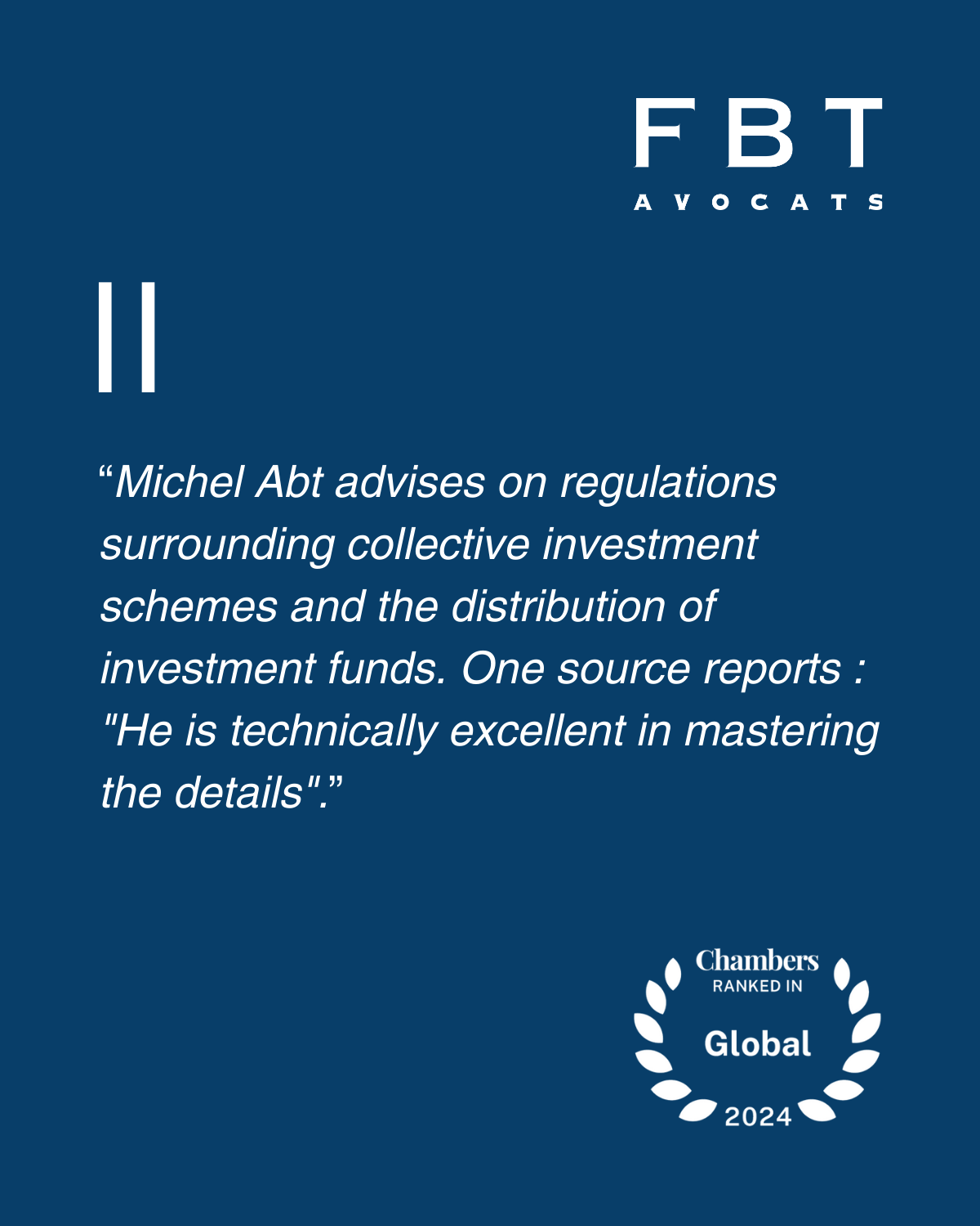 Finally, Michel Abt is an expert in financial market regulation, particularly in investment funds.